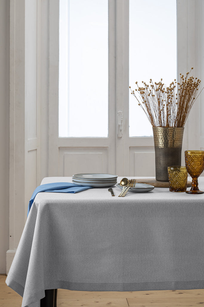 Tovaglia Antimacchia Effetto Lino 150x200 Tinta Unita Grigio Chiaro