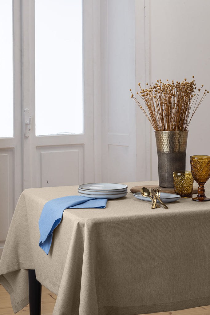 Tovaglia Antimacchia Effetto Lino 150x260 Tinta Unita Beige