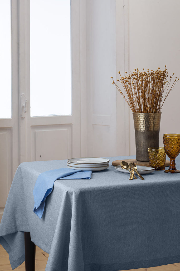 Tovaglia Antimacchia Effetto Lino 150x260 Tinta Unita Blue