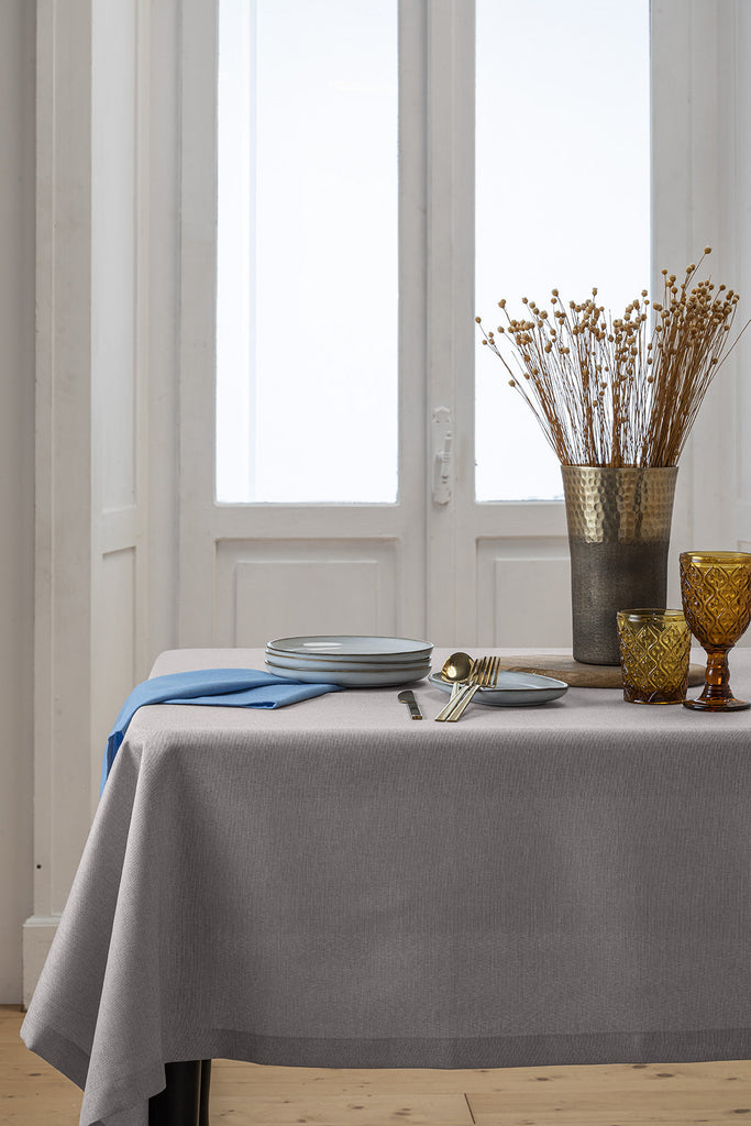 Tovaglia Antimacchia Effetto Lino 150x200 Tinta Unita Grigio