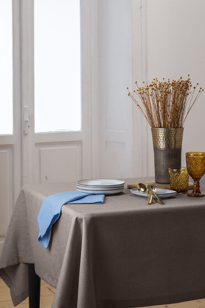 Tovaglia Antimacchia Effetto Lino 150x260 Tinta Unita Marrone