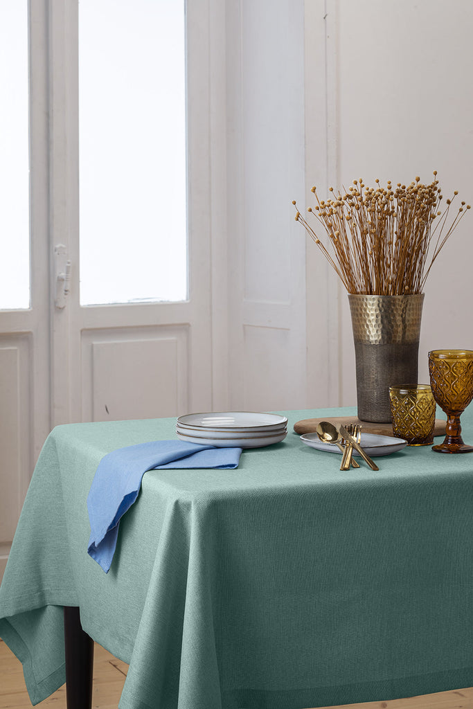 Tovaglia Antimacchia Effetto Lino 150x260 Tinta Unita Verde Salvia