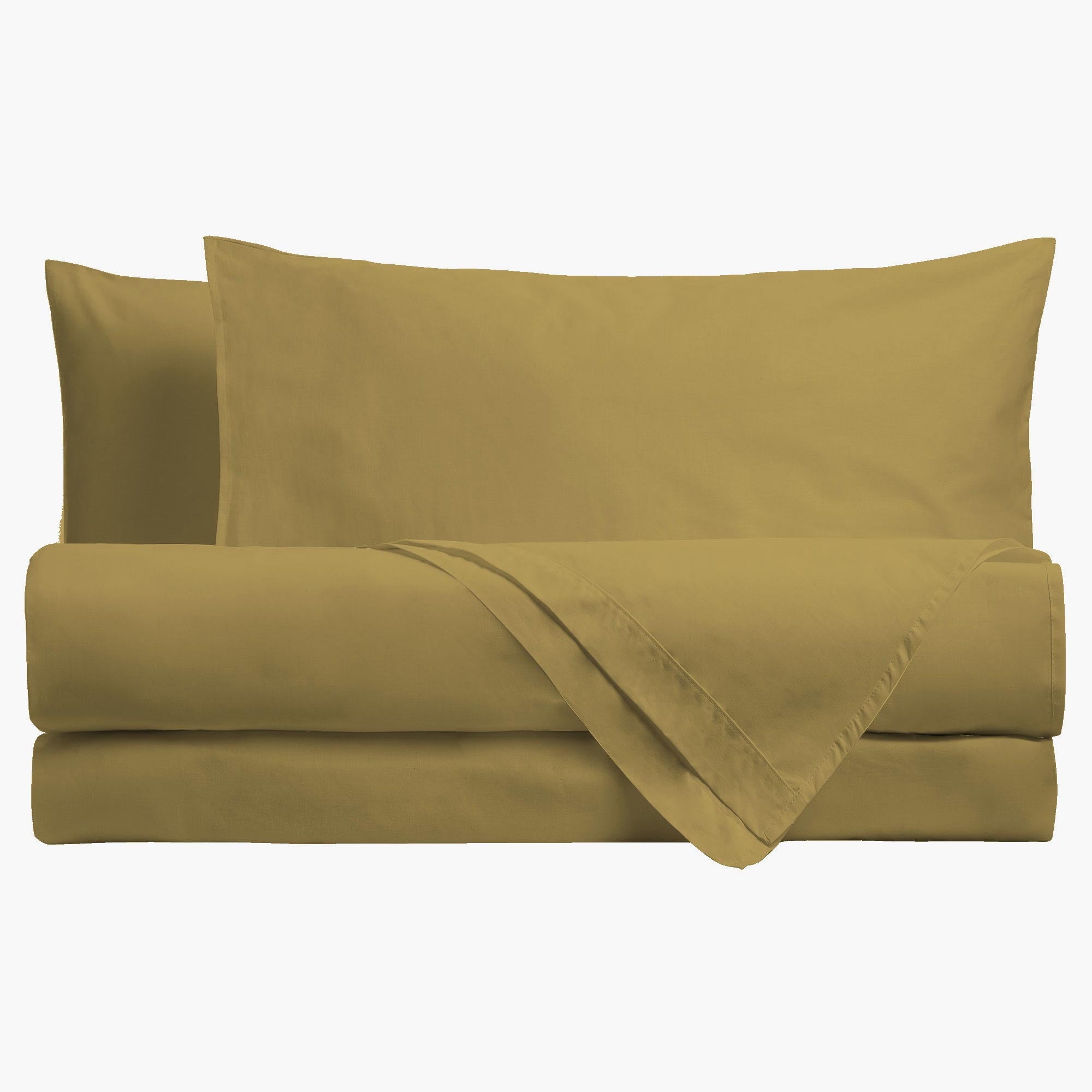 Parure Copripiumino 100% Cotone Biologico Singolo Tinta Unita Ocra